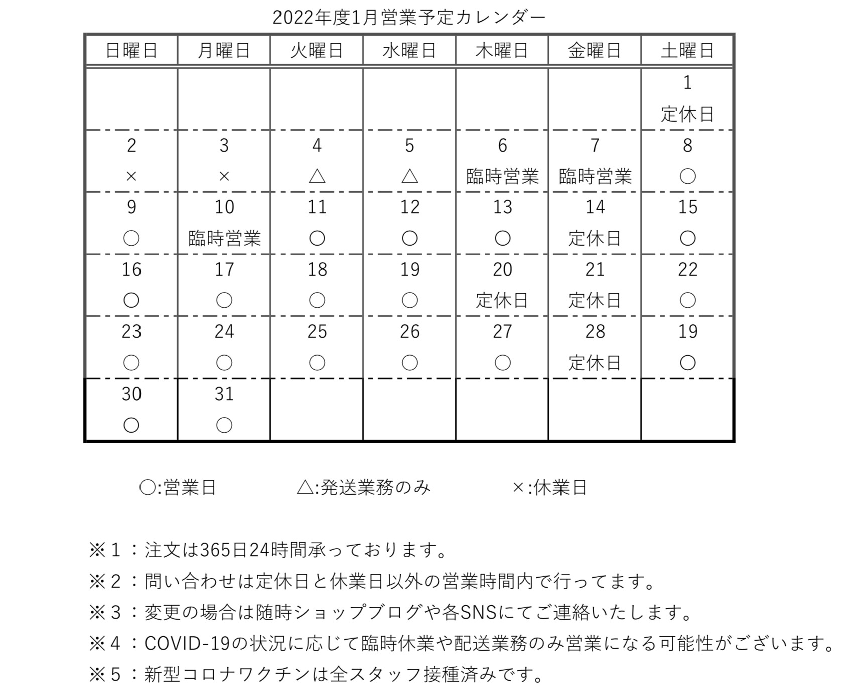 【カレンダー】2022年度1月営業予定カレンダー | ナカヤマファーム滋賀