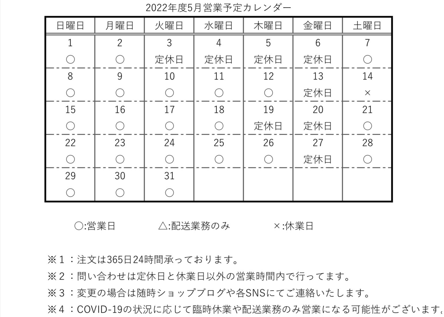 【カレンダー】2022年度5月営業予定カレンダー | ナカヤマファーム滋賀