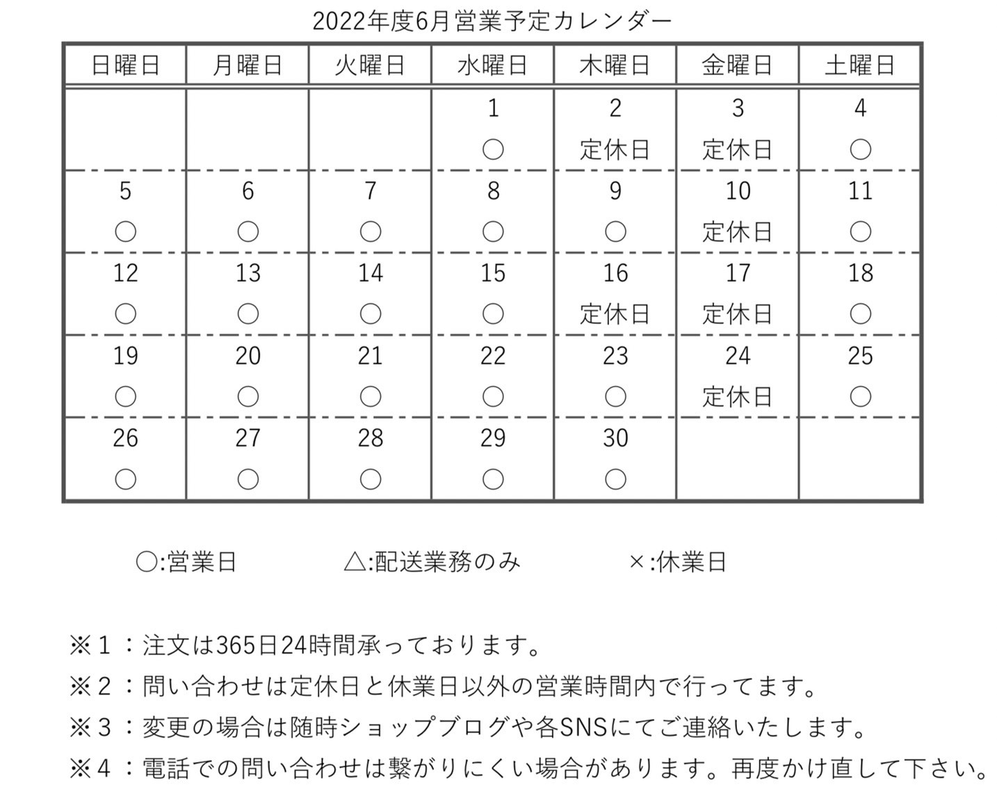 【カレンダー】2022年度6月営業予定カレンダー | ナカヤマファーム滋賀