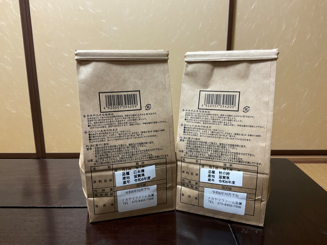 昔ながらの品種日本晴と滋賀県のブランド米の一つの品種秋の詩の食べ比べでご堪能頂ける商品です。